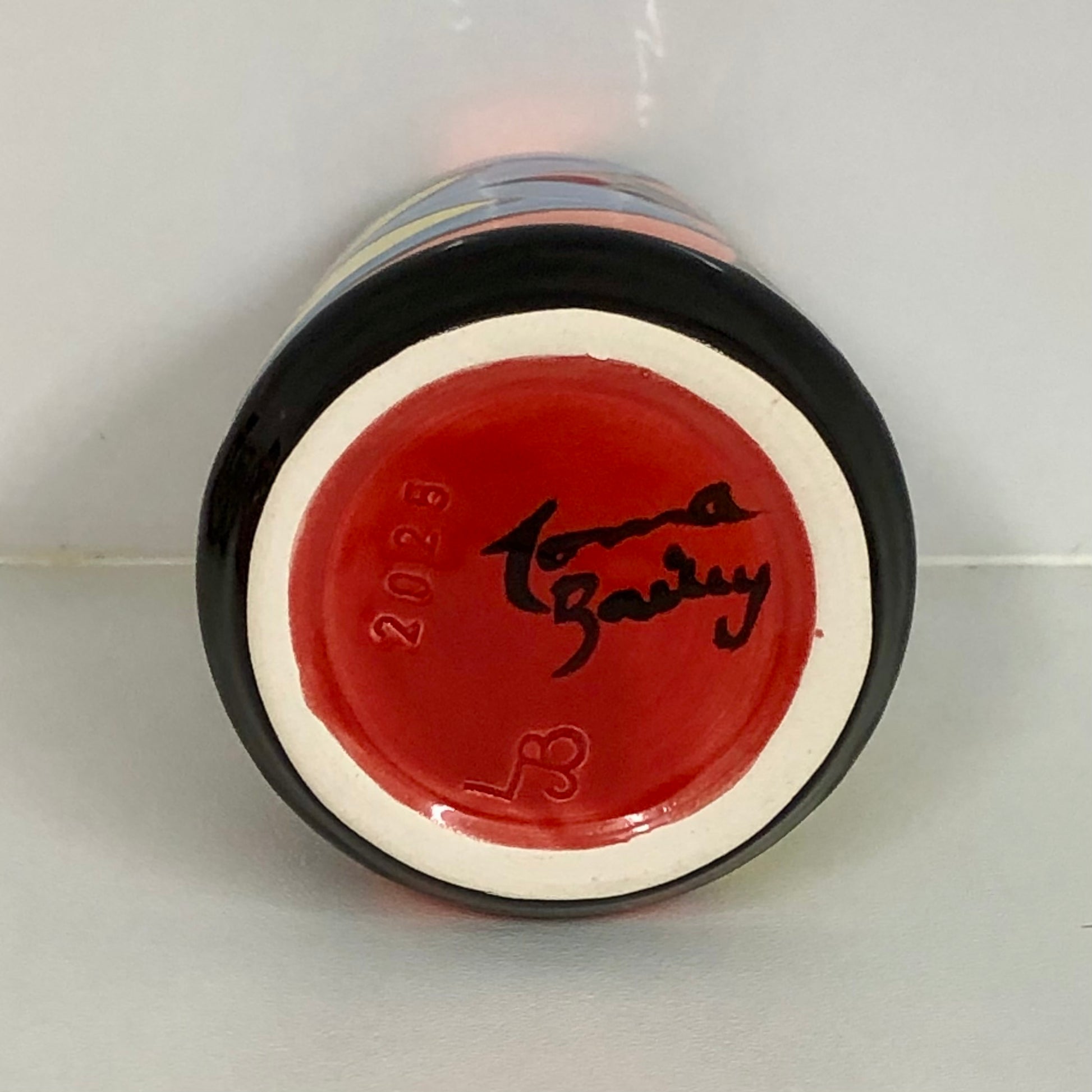 Hand thrown and hand decorated by Lorna Bailey herself, this vase features a stylised flower design. It is glazed in her usual vivid colour palette and signed by Lorna on the base.