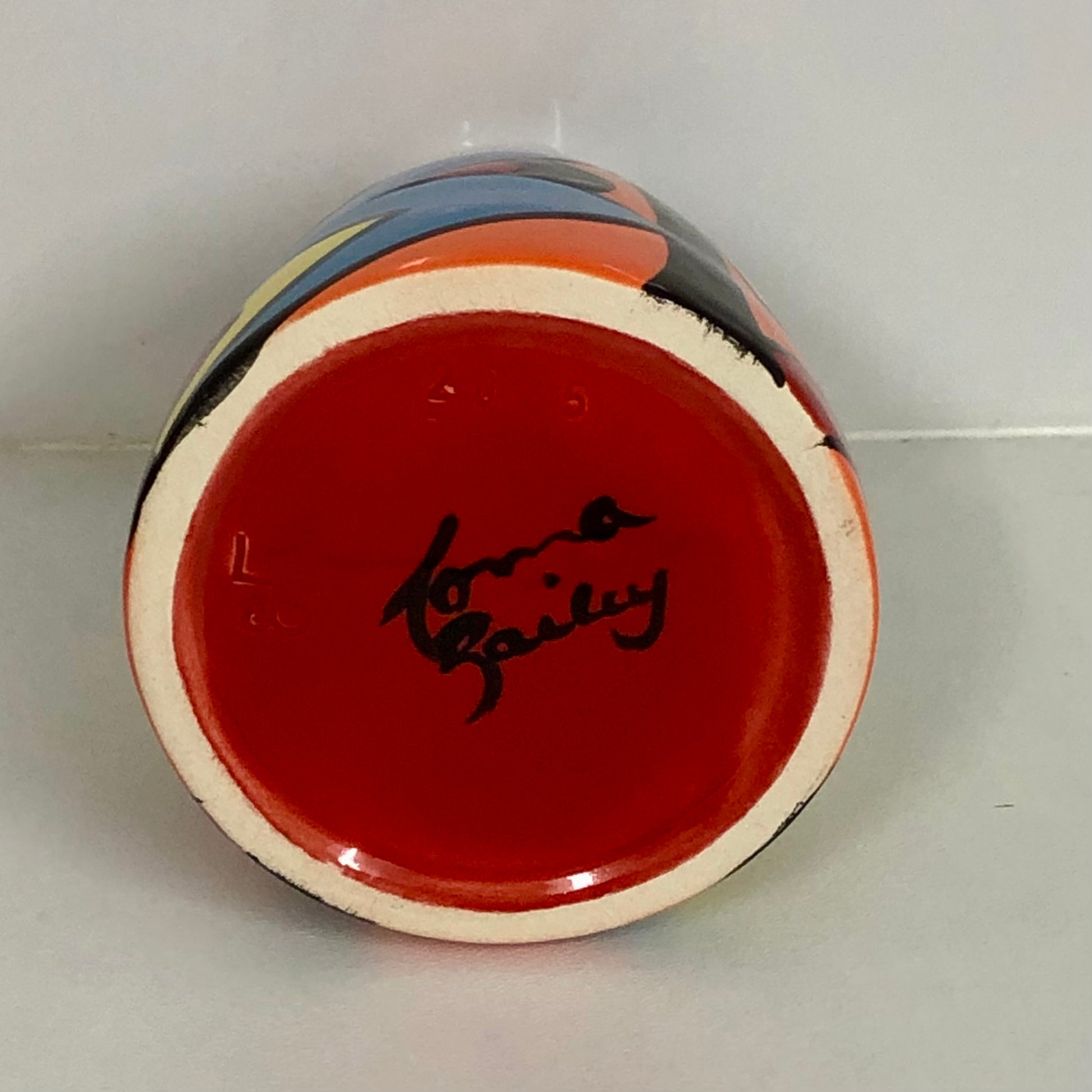 Hand thrown and hand decorated by Lorna Bailey herself, this vase features a stylised flower design. It is glazed in her usual vivid colour palette and signed by Lorna on the base.