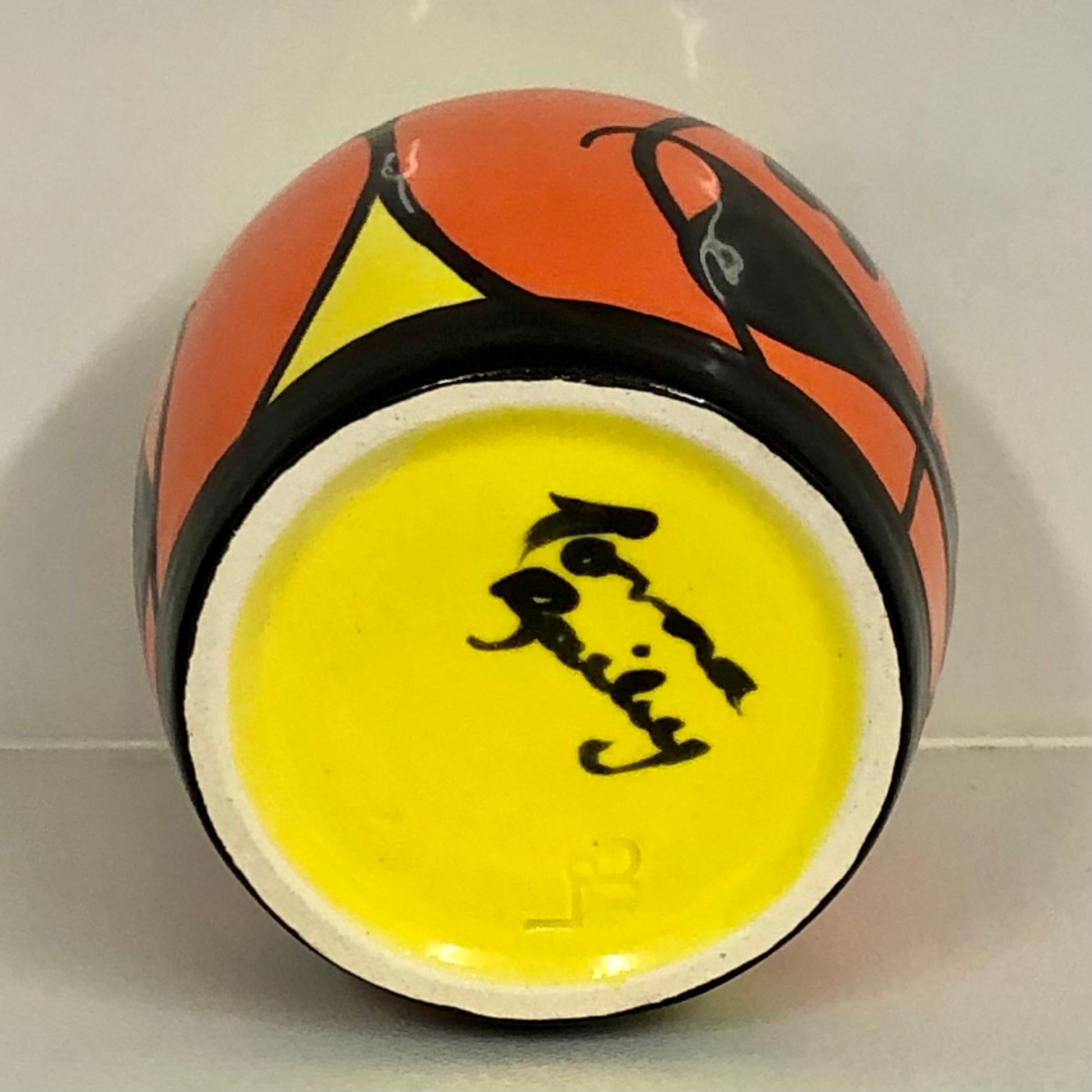 Hand thrown and hand decorated by Lorna Bailey herself, this vase features a stylised Jack O’Lantern ready for Halloween. It is glazed in her usual vivid colour palette and signed by Lorna on the base.