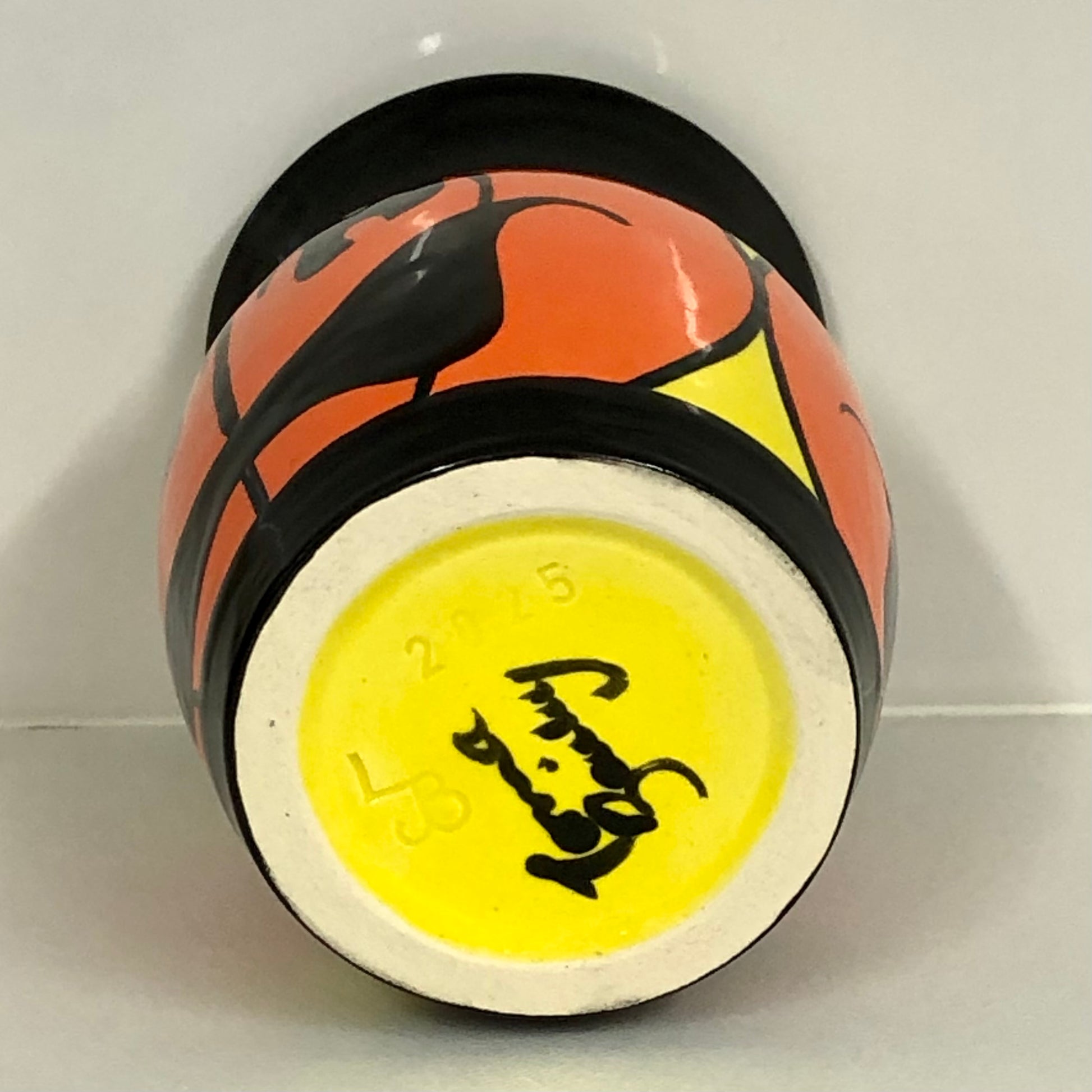 Hand thrown and hand decorated by Lorna Bailey herself, this vase features a stylised Jack O’Lantern ready for Halloween. It is glazed in her usual vivid colour palette and signed by Lorna on the base.