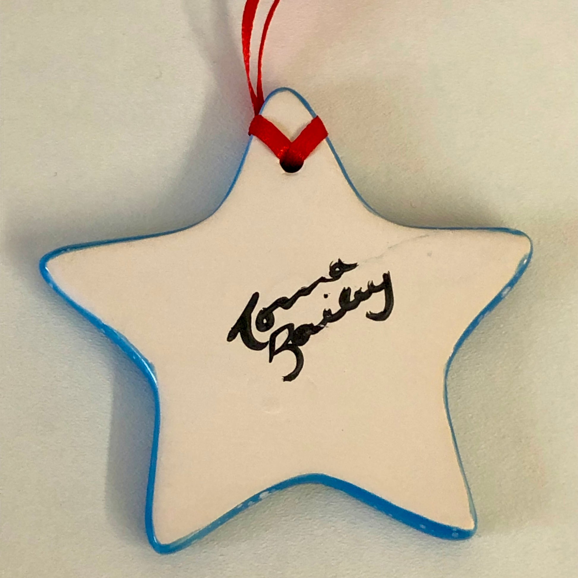 Each decoration is approximately 8.3cm in diameter & 0.8cm thick, and comes with a piece of black ribbon so it’s ready to hang. A few have come from the kiln with a slight fault on them (see photos for details) and are offered at a reduced price.